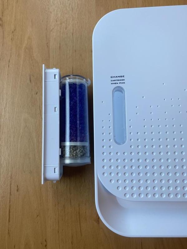 *De OzOnato vereist geen reiniging of onderhoud om voortdurend topprestaties te leveren. Het enige onderdeel dat op gezette tijden vervangen dient te worden is de ontvochtigingscartridge. De cartridge is in de OzOnatO opgenomen om de lucht te ontvochtigen zodat de productie van Ozon stabiel blijft. Gemiddeld gaat de cartridge een jaar mee, dit is ook afhankelijk van de luchtvochtigheid in de ruimte. De verkleuring naar rood geeft aan wanneer die vervangen mag worden en is te bestellen via nieuwwater.shop a € 48,-. Voor extra details verwijzen we naar de NL-talige handleiding.